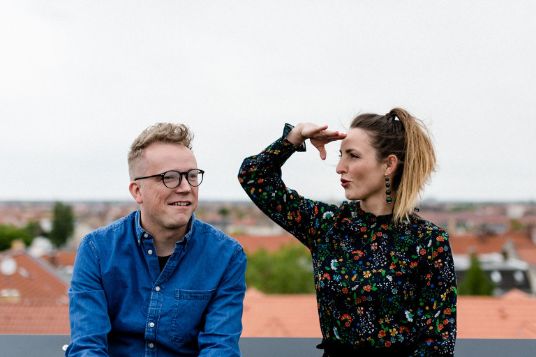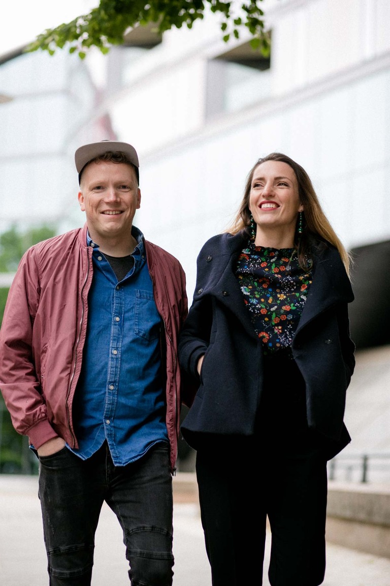 Marta und Martin sind spannende Typen. Das wurde mir (Timm) schnell klar, als ich in Ihre Leipziger Wohnung kam und herausfand, was sie so ausmacht, umtreibt und was Ihre Vision ist, vor allem mit Ihren „Babys“, der Band Mails und dem Kulturwerk M14, das sie leiten. Hier geht es um Musik und Kunst und Menschen darin zu fördern und auszubilden. Martin habe ich vor über zehn Jahren kennengelernt, als unsere beiden Bands ein Konzert in Leipzig hatten, und wir haben irgendwie Kontakt gehalten. Fürs Shooting sind wir aufs Dach ihrer Wohnung gestiegen, zur alten Messe mit ihren opulenten alten Gebäuden und zur Staatsbibliothek mit ihrer modernen Architektur gefahren. Eigentlich sind neben Paarfotos genau soviele Künstlerportraits dabei entstanden, die wir auf unserer Website www.ziegenthaler.com zeigen wollen.