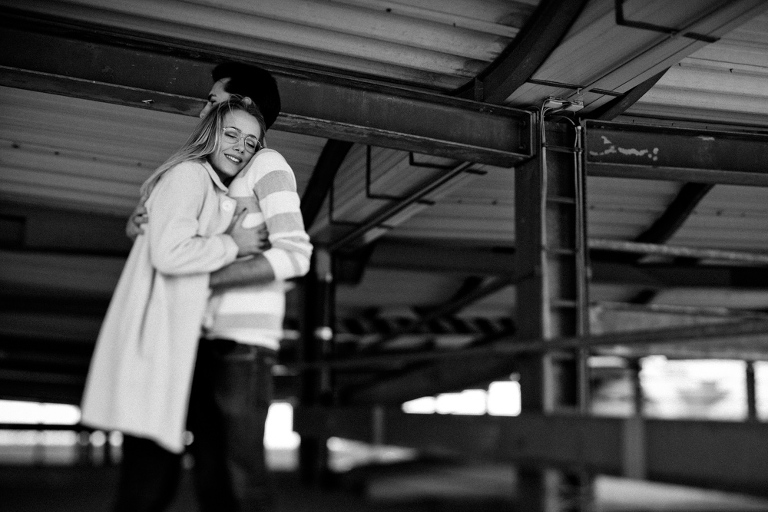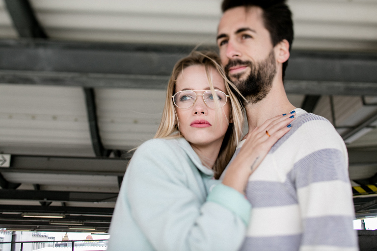 I wanted to shoot on a parking deck for a long time and finally the opportunity arose with the couple shoot of Uschi and Reimar in Leipzig. Those two were open for the location I chose and besides that they were extraordinarily photogenic.