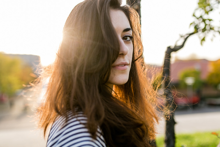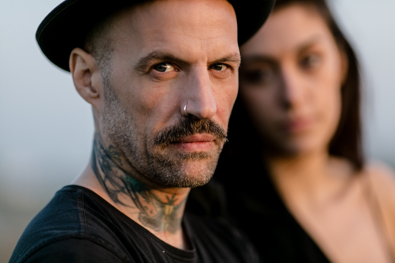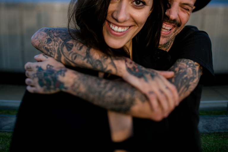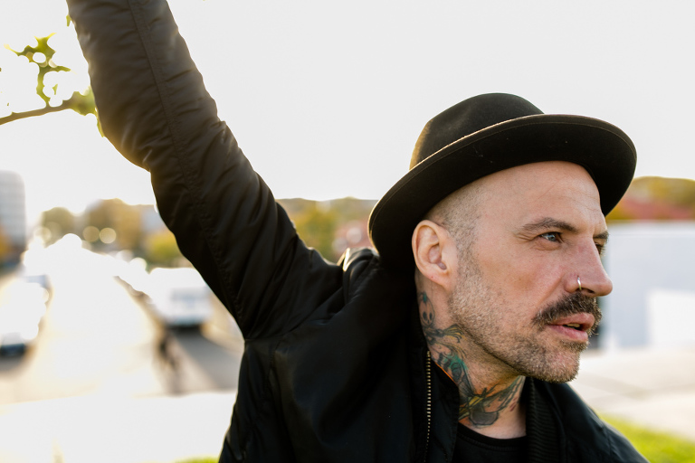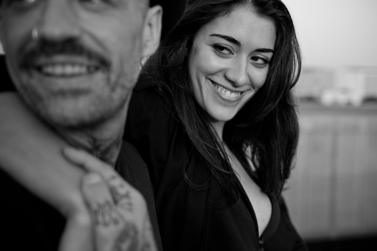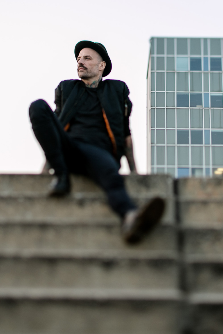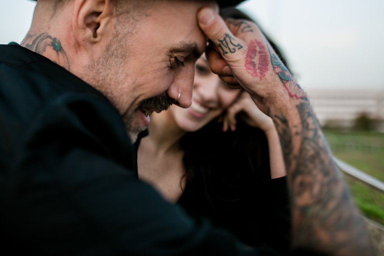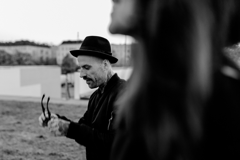 Im Vorfeld der Keep-it-real-Fotografenkonferenz traf ich (Timm) mich nach über fünfzehn Jahren mit meinem alten Buddy Kolja, den ich aus meiner Zeit in Münster kenne. Jetzt lebt er schon lang in Berlin-Friedrichshain und ist eine Art Entrepreneur/Lebenskünstler/Model…und Punk. Er hat schon viele lustige Sachen gemacht: In Münster hat er für Titus-Skateboards gearbeitet und diverse relativ lebensmüde Stunts aufgenommen. Man erinnert sich vielleicht, es war damals die Hoch-Zeit von Jackass… Mit einer Moped-Gang aus Berlin (Team Wolf) ist er nach Transsylvanien gefahren und hat es auf Video festgehalten. Nebenbei war er Model, u.a. für Adidas. Es war schön zu hören, dass es ihm gut geht und er sein Leben liebt. Mitgebracht zum Shooting hat er Natalia, ursprünglich aus Nord-Spanien. Das Velodrom hat es mir mit seinem Ufo-artigen Aussehen angetan und das Abendlicht stand auch perfekt. Manchmal fallen mir Liedtextzeilen oder Gedichte zu Fotos ein, hier passt wohl am Besten „Swing life away“ von Rise against: