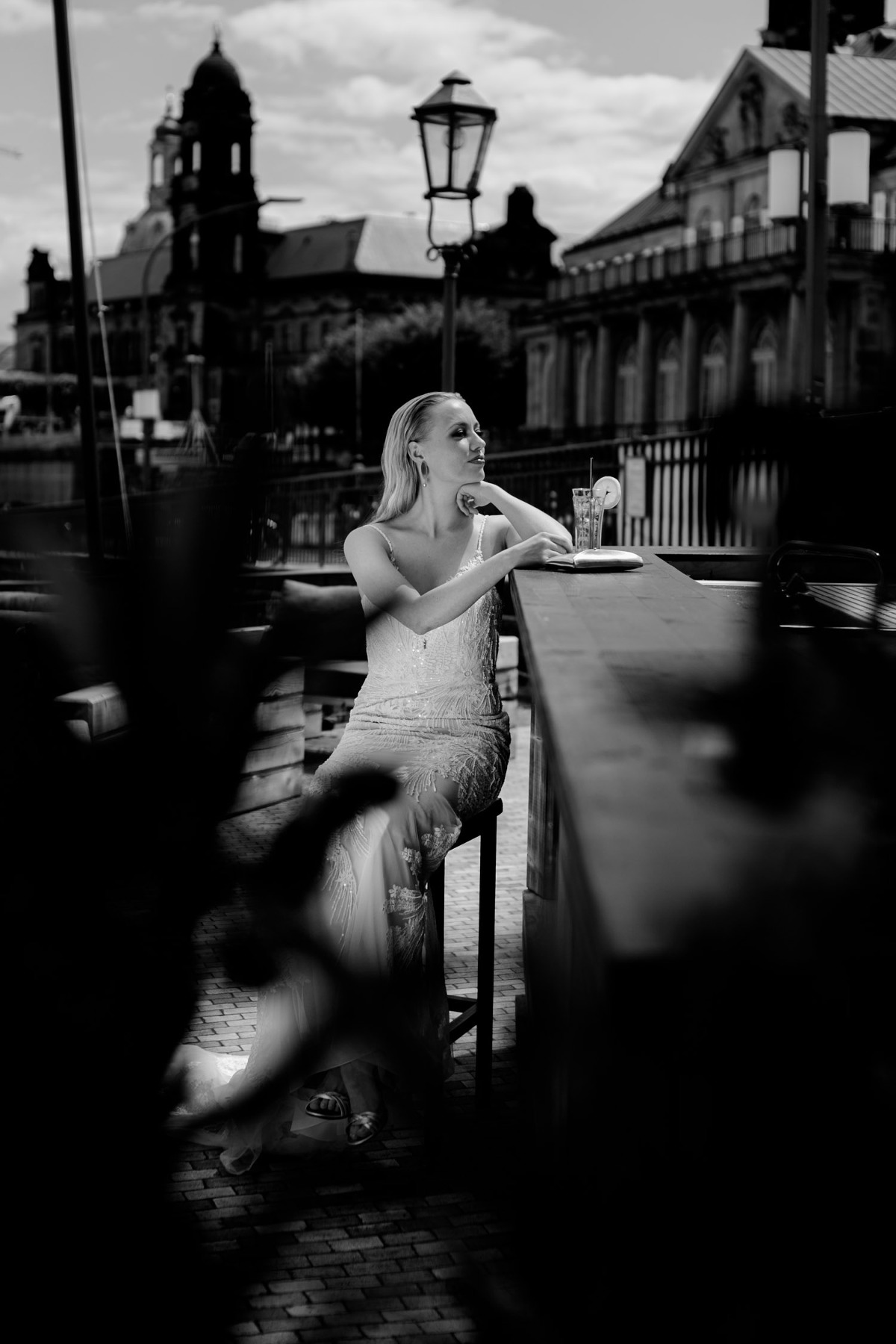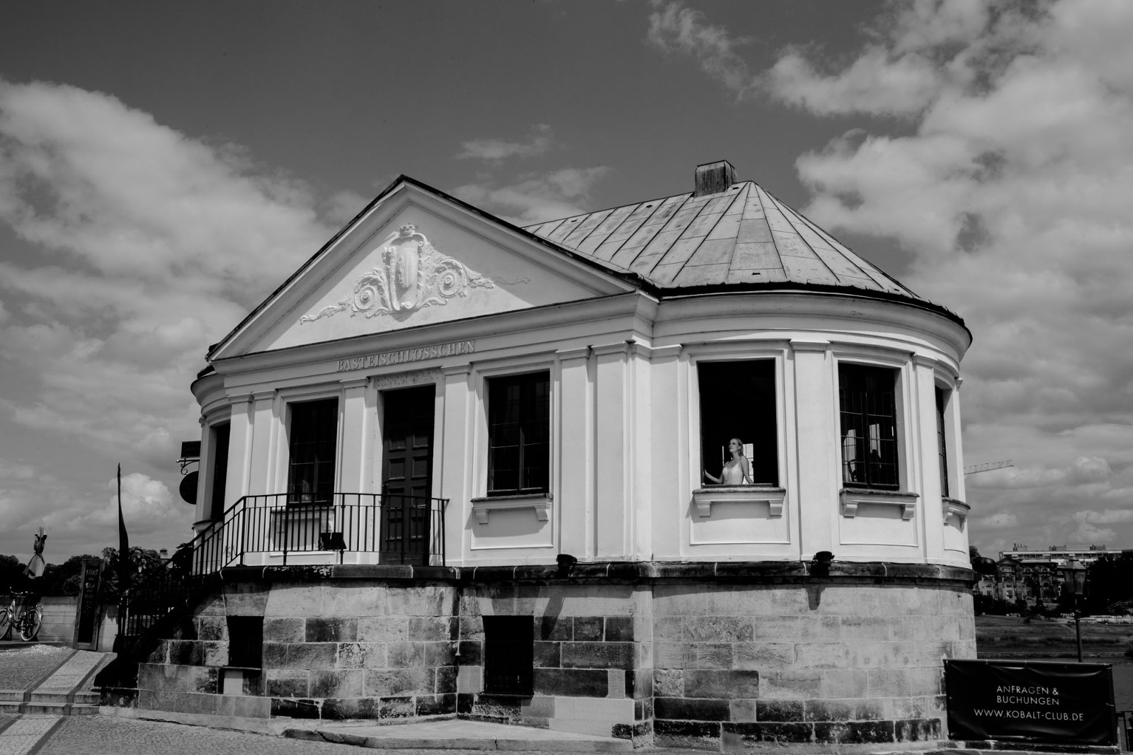 Alles begann mit einer Entdeckung im Branchenverzeichnis. Da inserierte so ein kleiner Club… „Nie davon gehört“, war unser erster Gedanke. „Sieht geil aus“, der zweite. Oder war es andersherum. Wer weiß das schon? Und so kam es, dass wir uns eines schönen Tages das Basteischlösschen zwischen Elbe und Dresdner Altstadt ansahen. Wir waren begeistert. Naja, das ist ein wenig untertrieben. In meinem (Judiths) Kopf begann es zu arbeiten und nach einigen Emails, Anrufen und Treffen war klar, dass wir ein Shooting als Inspiration für eine urbane und clubbige Hochzeit im Club Kobalt Royal organisieren würden.