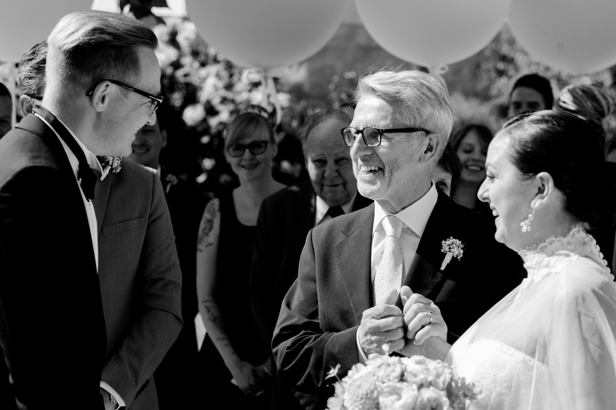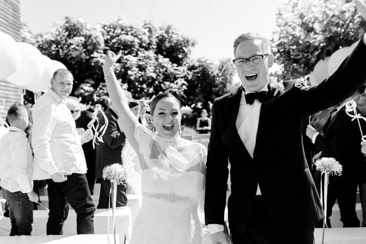 Glück. JA, das hatten wir alle an diesem Tag. Unser Paar, dass sich bei einem abenteuerlichen Trip mit einem Einkaufswagen näherkam und sich an diesem sonnigen Augusttag im Rahmen einer freien Zeremonie traute. Die Familien und Freunde, die diesen besonderen Tag mit Nina und André feierten, mitfieberten und mitfreuten. (Und sich nicht zu schade für verrückte Aktionen waren.) Wir, weil wir dieses saucoole Event als Hochzetsfotografen dokumentieren durften. Ach, einfach alle. Es war einfach schön mit euch!