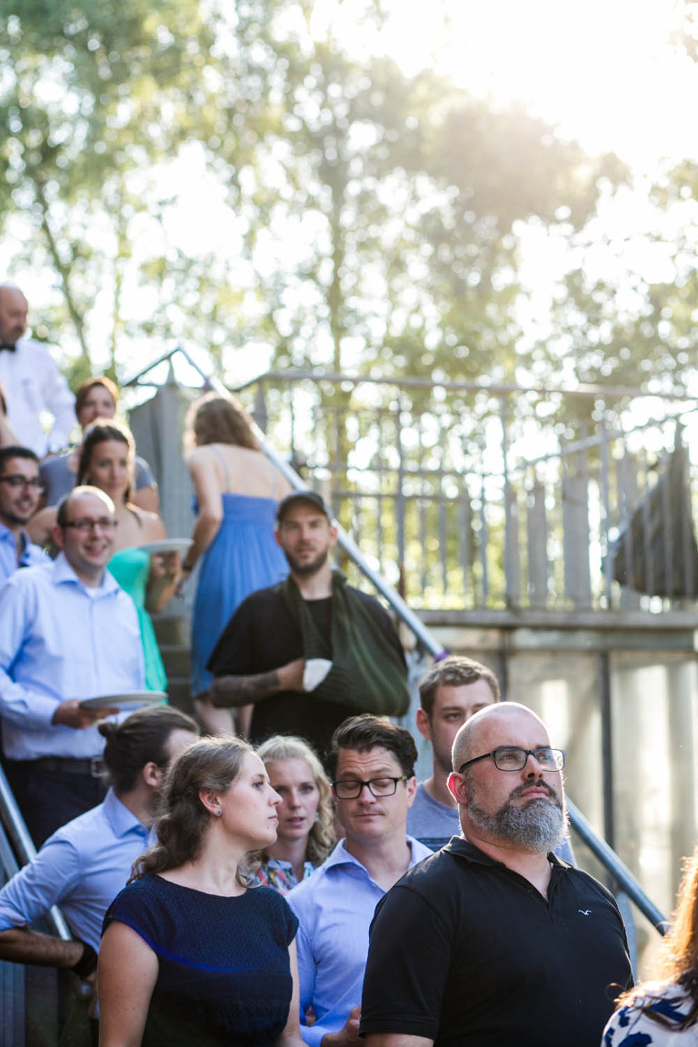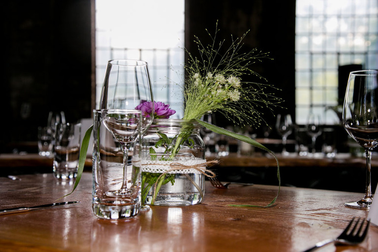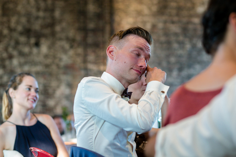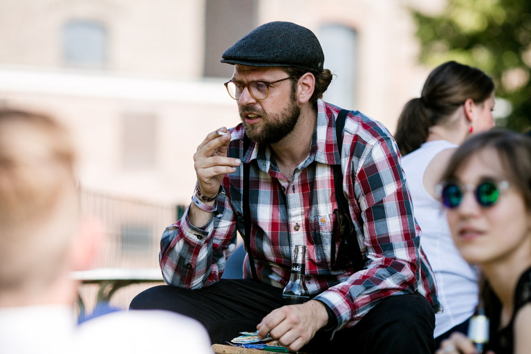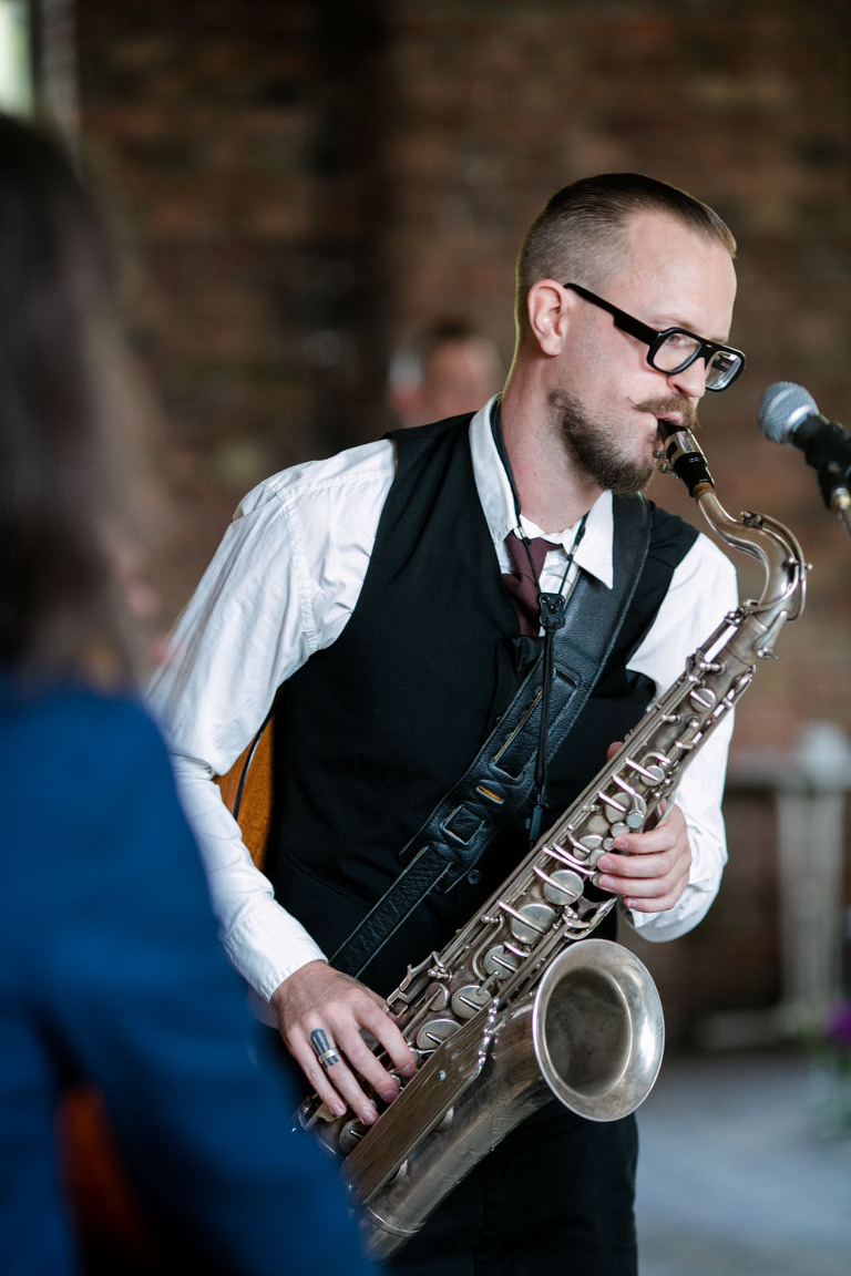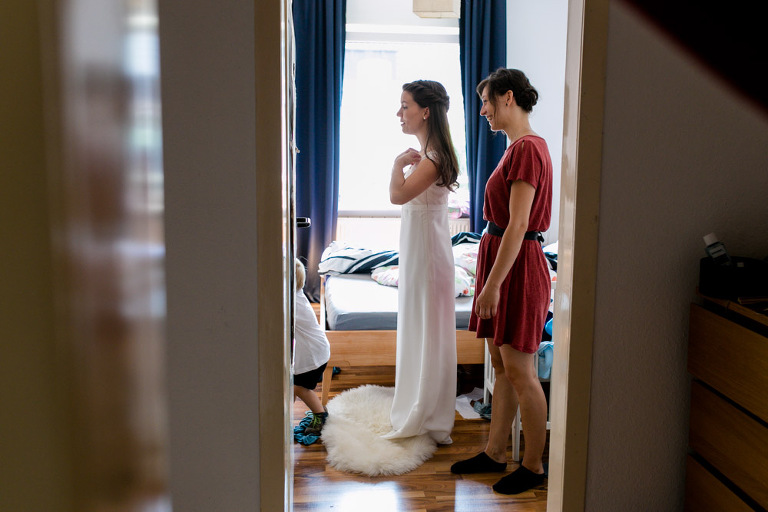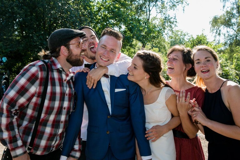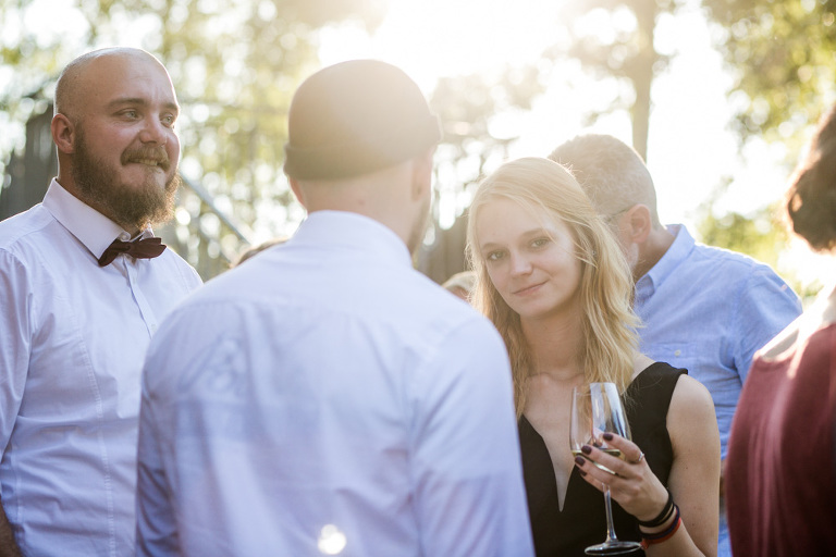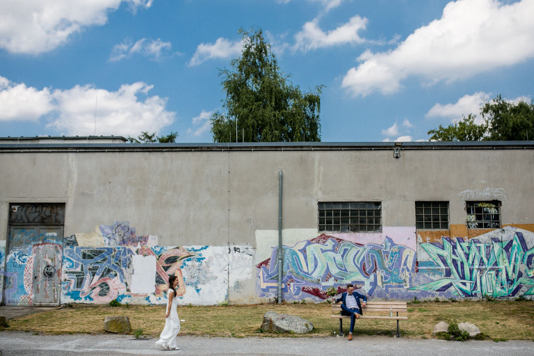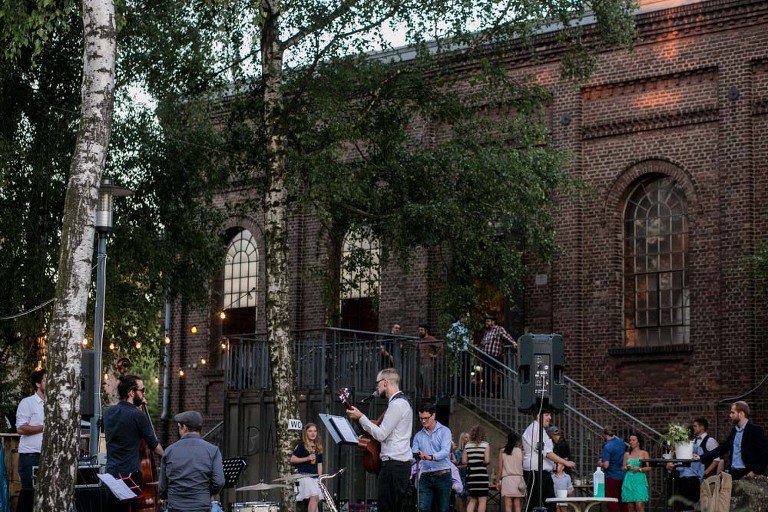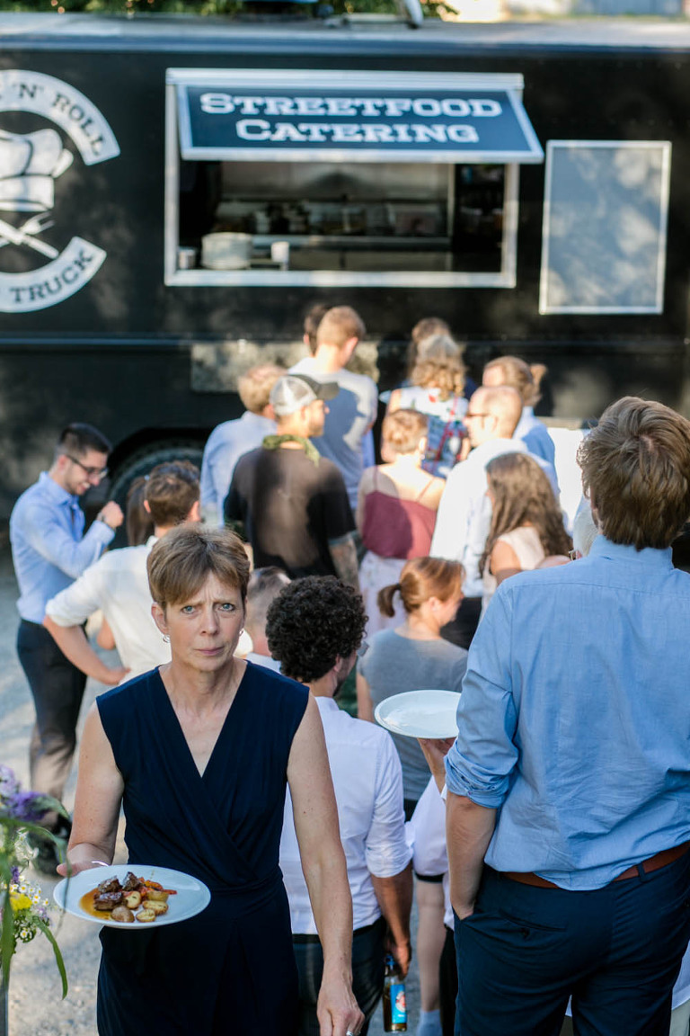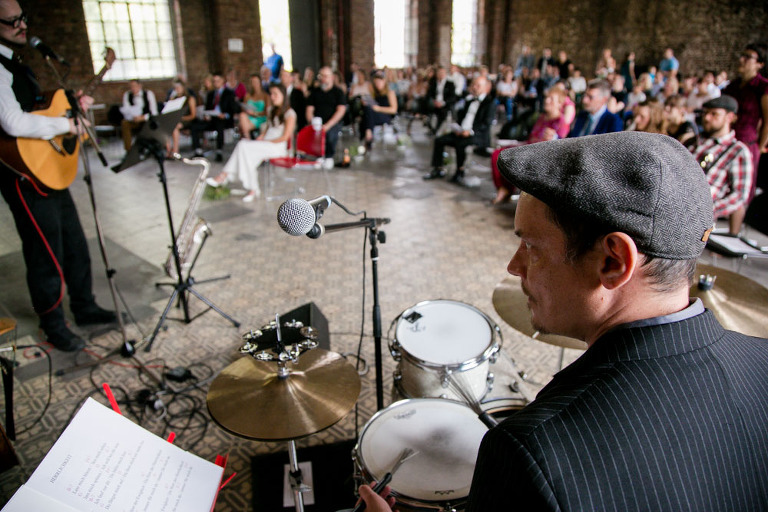 In July I (Timm) drove west to the wedding party of Katja and David, and what a loosened and unconventional wedding party it was! For you to remember, we already did a couple shoot with them on an old airfield. After the getting-ready in their Bochum home we moved over to the Zeche Carl in Essen, an old industrial estate turned into a museum, where there was enough space for the wedding service, the chillout zone in the garden and the dance action in the basement. The church ceremony was led by Matze who once wed us. With Ben, the preacher, Timm had been doing music a lot and the swinging Americana music in the service came from the „Die ehrlichen Arbeiter“. So it was a big friend`s gathering also for Timm. After a couple shooting in the backyard of the estate and a very relaxed afternoon in the garden there was a Barbecue made out of a food van! The first dance was embedded in everyone`s danceparty later. And our photobooth was used extensively. Wow!
