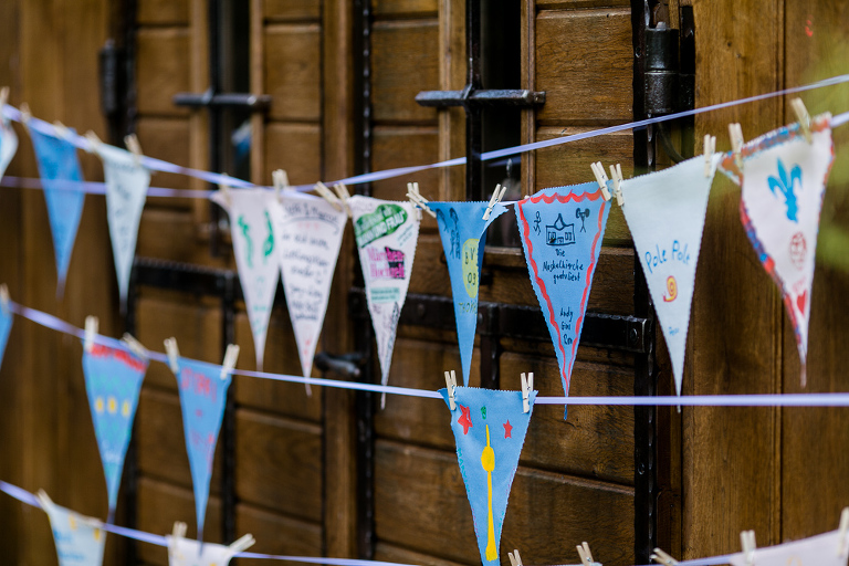 Ich habe bei allen Vorgesprächen und besonders auf ihrer Hochzeit die beiden als entspannte, lebensfrohe und witzige Menschen erlebt – was man an den Gruppenfotos auch sehr gut erkennen kann… Nach einem relaxten Nachmittag mit Wikingerschach, Wimpelmalen und Cocktails gab es ein großartiges Buffet mit anschliessender Eisbombe. Am nächsten Morgen saß ich zwischen Brautpaar und Freunden mit am Frühstückstisch und es fühlte sich sehr vertraut an. So entstehen übrigens die besten Hochzeitsfotos: Wenn man sich als Fotograf irgendwann einfach als Teil der Hochzeitsgesellschaft fühlt. Ich hoffe, man kann das sehen.