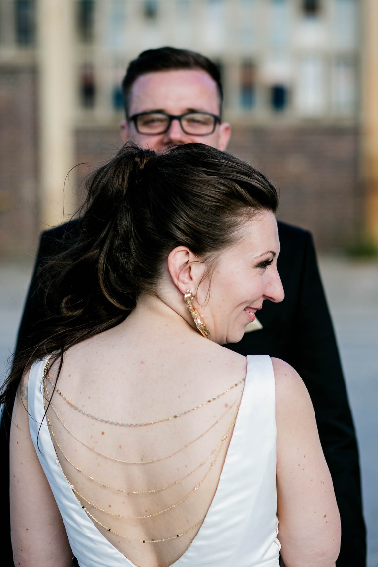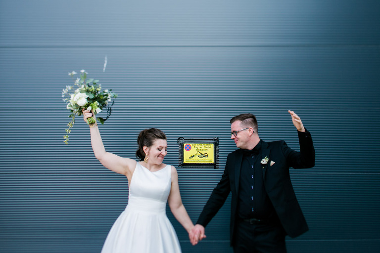 Nachdem ich (Timm) Anfang des Jahres bereits ihre standesamtliche Hochzeit fotografierte, gab es jetzt ein Wiedersehen mit Virginie und René und ihrer Tochter Cecilia. Und zwar in unserer Dresdner Lieblings-Hochzeitslocation, dem Elements DELI. Nach dem Getting Ready im Hotel bzw. bei Fabienne Lunden in der Make Up-Bar trafen sich die Drei beim Japanischen Palais. Bei sonnigem Maiwetter feierten sie mit Trauredner Robert Röck eine emotionale Freie Trauung auf der Wiese vor dem Elements. Die Gruppenfotos machten wir vor der opulenten Front des Zeitenströmung-Gebäudes. Und auch die Paarfotos entstanden quasi um die Ecke vor grauen und gelben Toren. Begleitet von der stimmungsvollen Partymusik der Shaggy Pilots fand der erste Tanz der Beiden statt, der recht bald in einen ausgelassenen Freestyle überging. Seid Ihr auch an einem Fotograf für Hochzeitsfotografie in Dresden interessiert? Schreibt uns gern ein paar Zeilen hier.