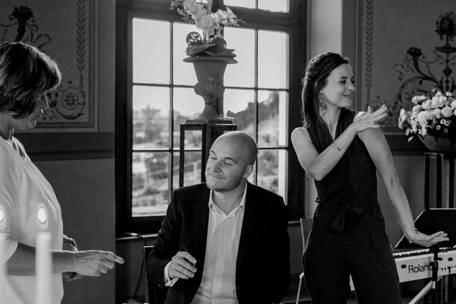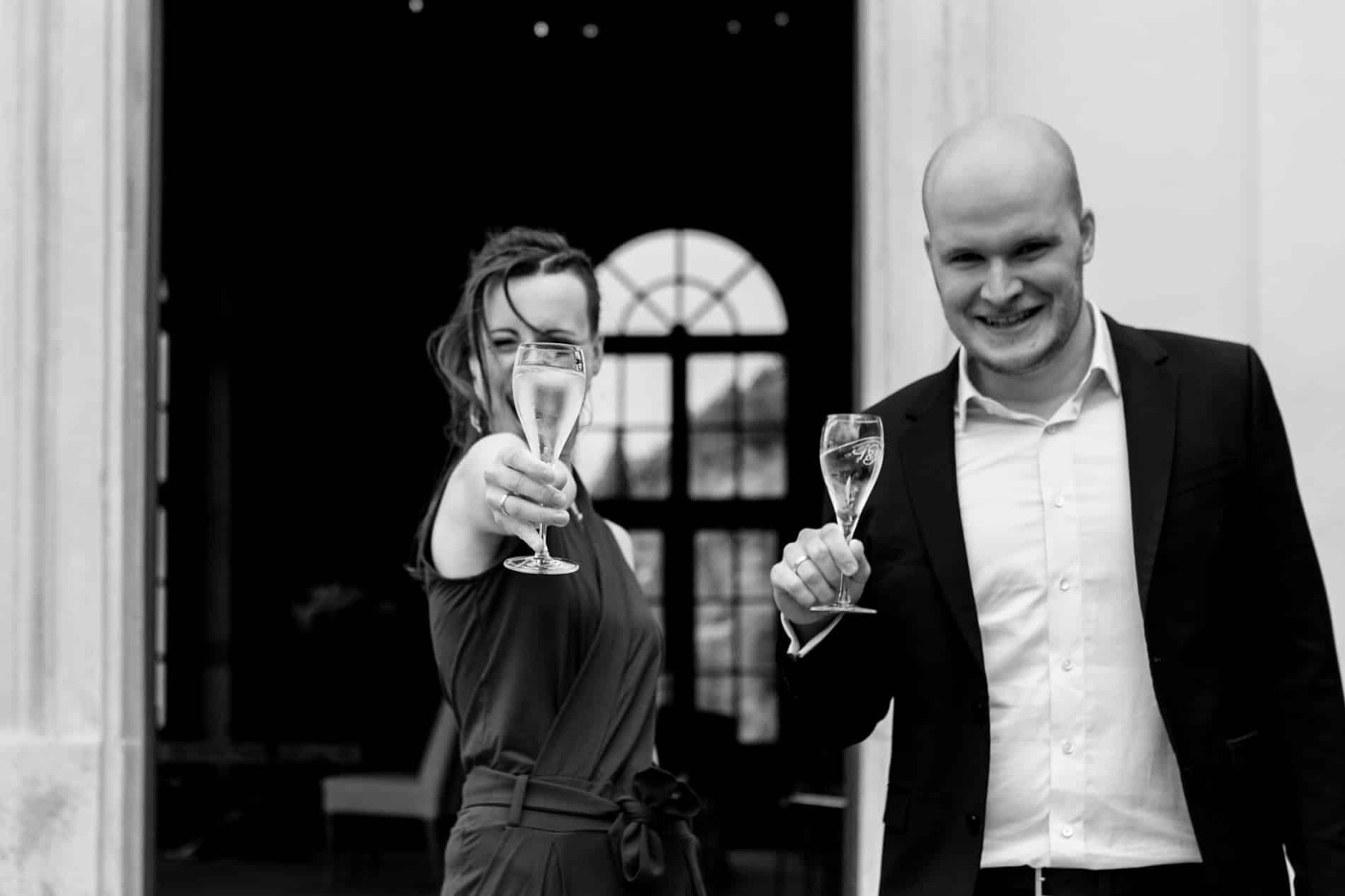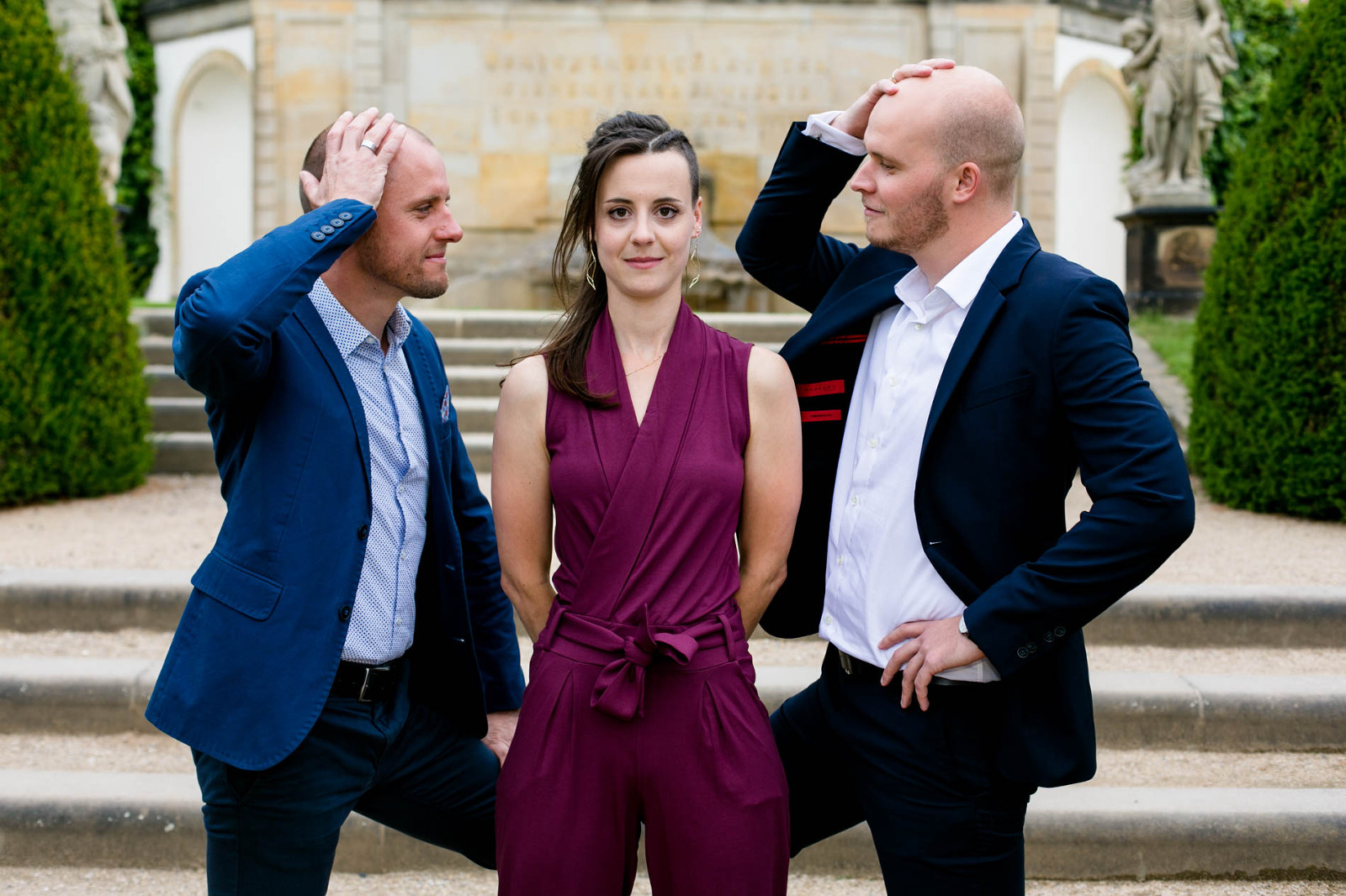 Wenn ihr auf unserer Seite schon ein bisschen gestöbert habt, dann ist es euch evtl. aufgefallen, dass wir ein Faible für Hochzeiten haben, die nicht nach Schema F verlaufen. Wenn wir spüren, dass ein Paar den Wunsch hat, seine Hochzeit nach den eigenen Regeln zu feiern und dann auch noch den Mut aufbringt, die Ideen umzusetzen, dann schlägt unser Herz ein bisschen schneller. Diese Individualität ist oft weniger spektakulär, sondern findet sich in kleinen Elementen und Gesten, die ein wenig anders verlaufen am Hochzeitstag, als man es vielleicht erwarten würde. Langer Rede, kurzer Sinn: So war es auch bei Johanna und Martin. Die standesamtliche Hochzeit fand im Belvedere auf Schloss Wackerbarth in Radebeul statt. Es ging fröhlich und ausgelassen zu und ich (Judith) hatte großen Spaß daran, die Moves und Gesten von Johanna, die sie immer wieder zwischendrin ganz lässig einbaute, zu erwischen. Bei der Standesamtlichen Trauung waren die engsten Familienmitglieder und Freunde eingeladen. Da wir Fotografen am Datum der kirchlichen Hochzeit leider im Urlaub waren, entschieden sich die beiden, ihre Hochzeitsfotos im supercoolen Zweiteiler von Labude und geschneiderten Hochzeitsanzug vorzuziehen. Das war eine große Ehre für mich!